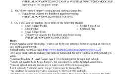 We are excited to announce the 2020 Appalachian Network Royal Ranger Virtual Pow Wow! Here is how to participate: (Please complete at least one of the three items below.) Set up a campsite, either FCF or Modern A campsite must consist of at least 1 tent and any other items…